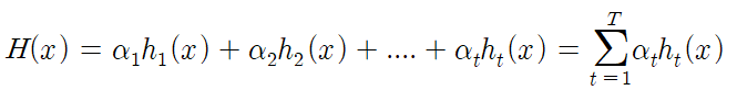 T개의 약한 분류기(weak classifier)를 weight linear combination 하여 최종 강한 분류기(strong classifier)를 만든다.