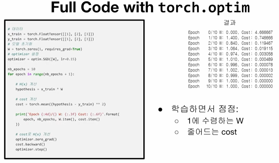 - optimizer.step()으로 gradient descent
