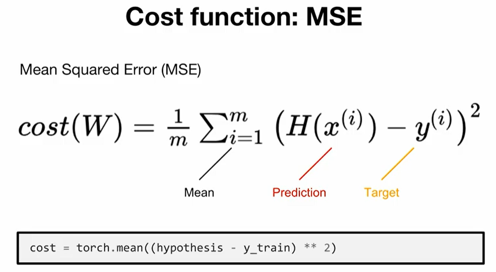 cost = torch.mean((hypothesis - y_train) ** 2)