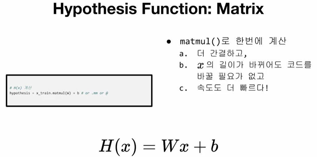hypothesis = x_train.matmul(W) + b # or .mm or @