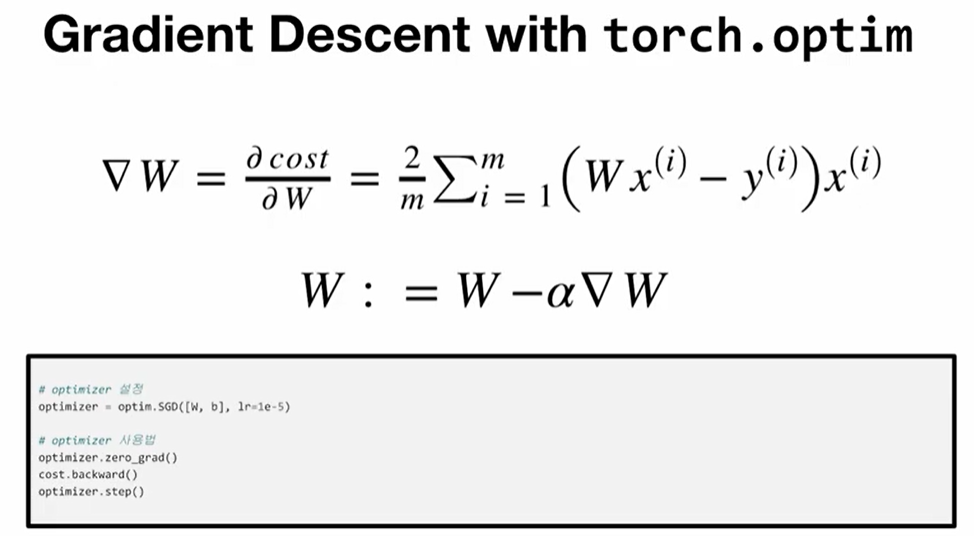 optimizer = optim.SGD([W, b], lr=1e-5)