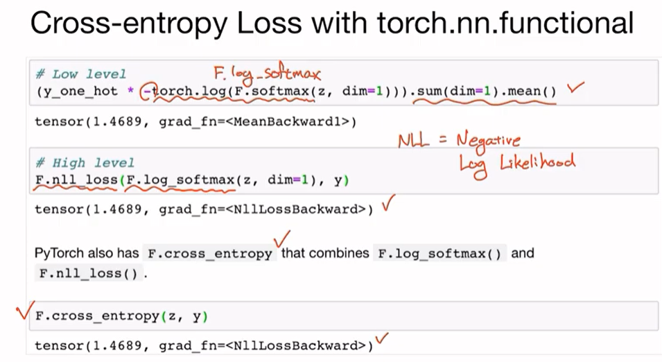 #Low level에서 torch.log(F.softmax())는 F.log_softmax()로 간단하게 표현할 수 있다.